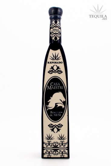 Casa Maestri Reserva de MFM Tequila Reposado is 100% puro de Agave, and rests in oak casks for up to one year. This limited edition Tequila is bottled in a blue ceramic bottle with sandblasted logo.